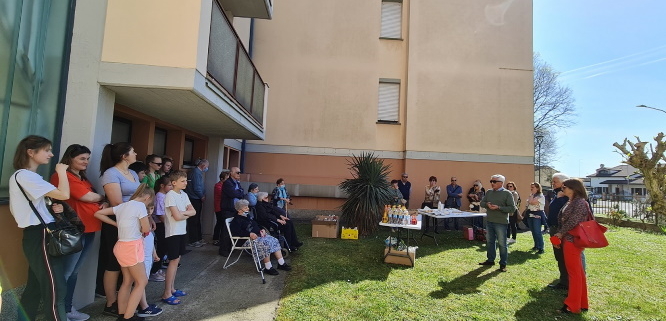 In paese la cooperativa possiede un complesso di trenta alloggi assegnati ai soci, di cui tre sono a disposizione della Cooperativa Azione, che vi ha accolto ad agosto una famiglia di cinque persone in fuga dall’Afghanistan e in queste settimane due nuclei, per un totale di undici fra donne e bambini, provenienti da Kiev e Mariupol: in convenzione con la prefettura, stanno loro garantendo tutti i servizi, a partire dalla regolarizzazione dei documenti, dall’accesso alla sanità e dall’inserimento scolastico.Le ultime arrivate, appunto dall’Ucraina, sono due sorelle e due cugine, insieme ai loro sette figli (un ottavo nascerà a maggio): dopo essere state accolte dalle loro madri, già in Italia per lavoro, hanno ricevuto questa sistemazione, visto il procrastinarsi della guerra, in cui sono impegnati i mariti, rimasti in Patria per combattere. Sono giunti a inizio marzo, quando i bombardamenti nelle loro città erano già iniziati, approfittando di un corridoio umanitario sicuro. E, pur nella massima gratitudine per questo fondamentale sostegno, sperano di tornare presto nella loro terra, con cui tengono costantemente vivo il legame, ad esempio attraverso la didattica a distanza. A Coccanile queste giovani madri con i loro figli non hanno soltanto ricevuto un aiuto, ma hanno, a loro volta, portato qualcosa di molto importante: una nuova socialità. L’arrivo di tanti giovani e bambini, con le loro voci e i loro giochi in giardino, ha avuto un impatto di grande vitalità e vivacità sulla comunità già residente, di età media più elevata. Ne è nato uno speciale microcosmo, fatto di persone dialoganti, ospitali e costruttrici di speranza per il futuro.A riconoscere e consolidare tutto questo la merenda insieme, che ha inteso riunire gli ospiti e i residenti per un momento di saluto e per lo scambio degli auguri e dei doni pasquali. Vi hanno partecipato l’assessora del Comune di Copparo Paola Peruffo, Loredano Ferrari e Massimo Buriani, presidente e direttore della Coop Castello, e Nicola Felletti, responsabile del settore accoglienza della Coop Azione.